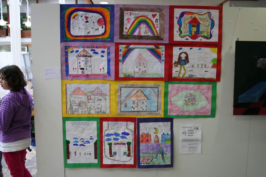 Ausstellungsarbeiten der Schülerinnen und Schüler zu "Kunst trotz(t) Armut"